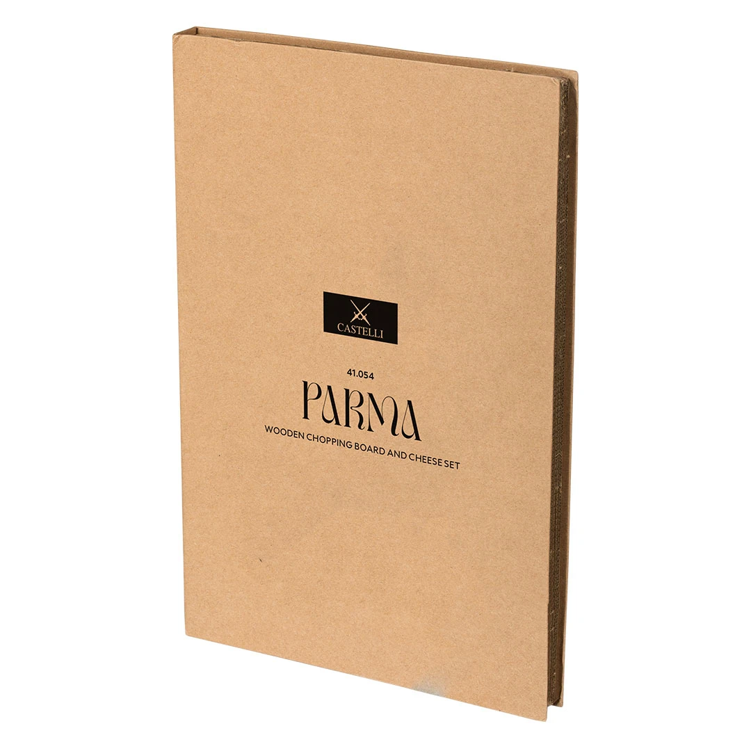 PARMA set za sireve osmišljen je kao idealan promotivni poklon za sve uživaoce dobrog sira i delikatesa. Set sadrži drvenu dasku namenjenu sečenju i serviranju, kao i dva noža prilagođena radu sa različitim vrstama tvrdih i mekih sireva. Daska je izrađena od drveta i pogodna je za personalizaciju laserskom gravurom, dok se noževi vizuelno i funkcionalno uklapaju u celinu seta. Proizvod dolazi u poklon pakovanju sa uputstvom sa unutrašnje strane i diskretnom štampom na spoljašnjoj strani, pri čemu se kutija može dodatno brendirati. PARMA set predstavlja kvalitetno rešenje za korporativne poklone, vinarije, gastro kampanje i promocije sa naglaskom na uživanje i deljenje. Ključne karakteristike: Materijal: drvo (daska), nerđajući čelik (noževi) • Sadržaj seta: drvena daska i 2 noža za tvrde i meke sireve • Namena: sečenje i serviranje sireva i delikatesa • Poklon pakovanje